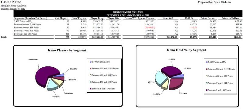 The next series of reports were completed for our Keno customers, to identify areas we could communicate and leverage the data for new growth.