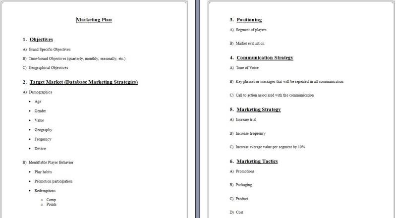 The following outline is a casino marketing plan in very broad context. The supporting values would go on to be used to support promotional dollars to be spent and tracked during and after events.